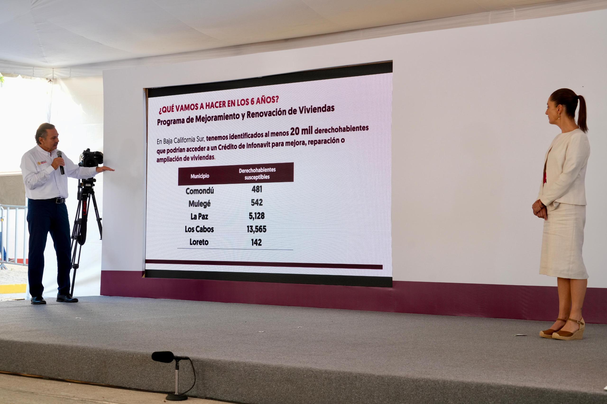 El director general del Instituto del Fondo Nacional de la Vivienda para los Trabajadores (Infonavit), Octavio Romero Oropeza, acompañó a la Presidenta Claudia Sheinbaum Pardo en la conferencia La Mañanera del Pueblo, donde se informó que, como parte del programa Vivienda para el Bienestar del Gobierno de México, el Instituto construirá en Baja California Sur 12 mil 500 viviendas y otorgará 25 mil créditos para mejoras y adquisición de terrenos, adicionales a las acciones actuales en el estado.