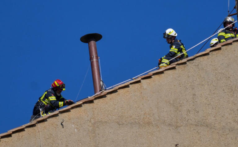 Bomberos instalaron la chimenea en el techo de la Capilla Sixtina del Vaticano con motivo del cónclave, que iniciará el 7 de mayo, para elegir al nuevo papa y por el que saldrá el humo negro o blanco que anunciará el resultado de las votaciones de los cardenales.
