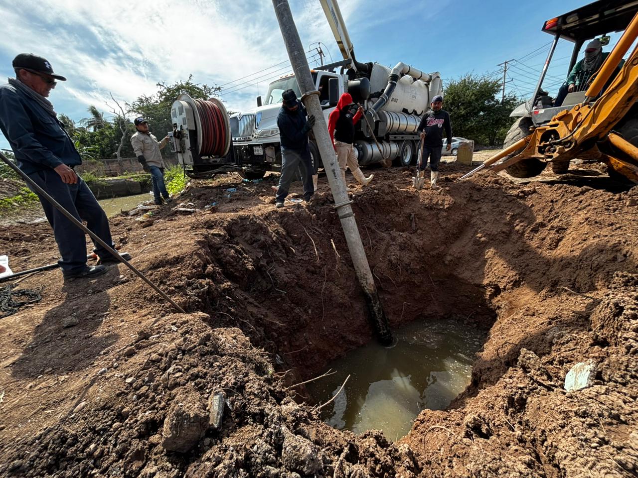 Los Mochis, Ahome, Sin.– Por indicaciones del Presidente Municipal, Antonio Menéndez de Llano Bermúdez, la Junta de Agua Potable y Alcantarillado del Municipio de Ahome atendió de manera inmediata una afectación sanitaria en el subcolector de la colonia Rosendo G. Castro.