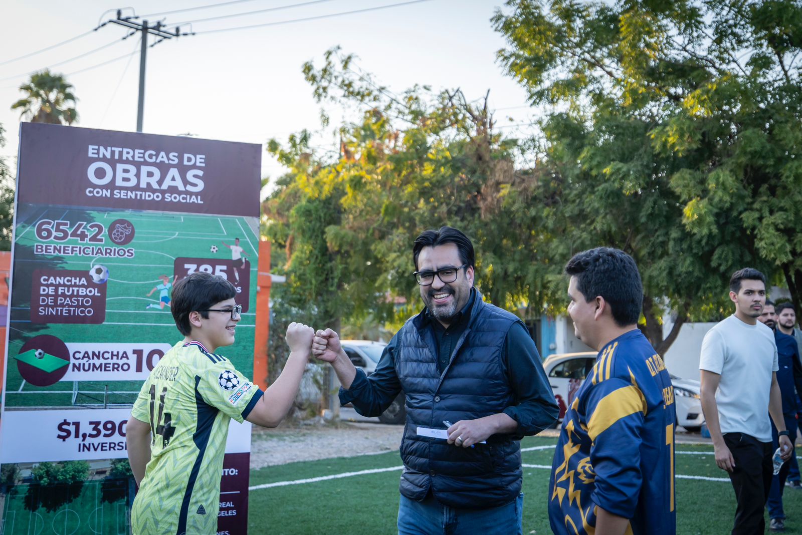 Gámez Mendívil resaltó que decidió entregar personalmente esta cancha cumpliendo el compromiso de regresar que hizo en el mes de octubre cuando inició su construcción, ya que su prioridad es mantener el diálogo directo con la ciudadanía y conocer de primera mano sus necesidades.