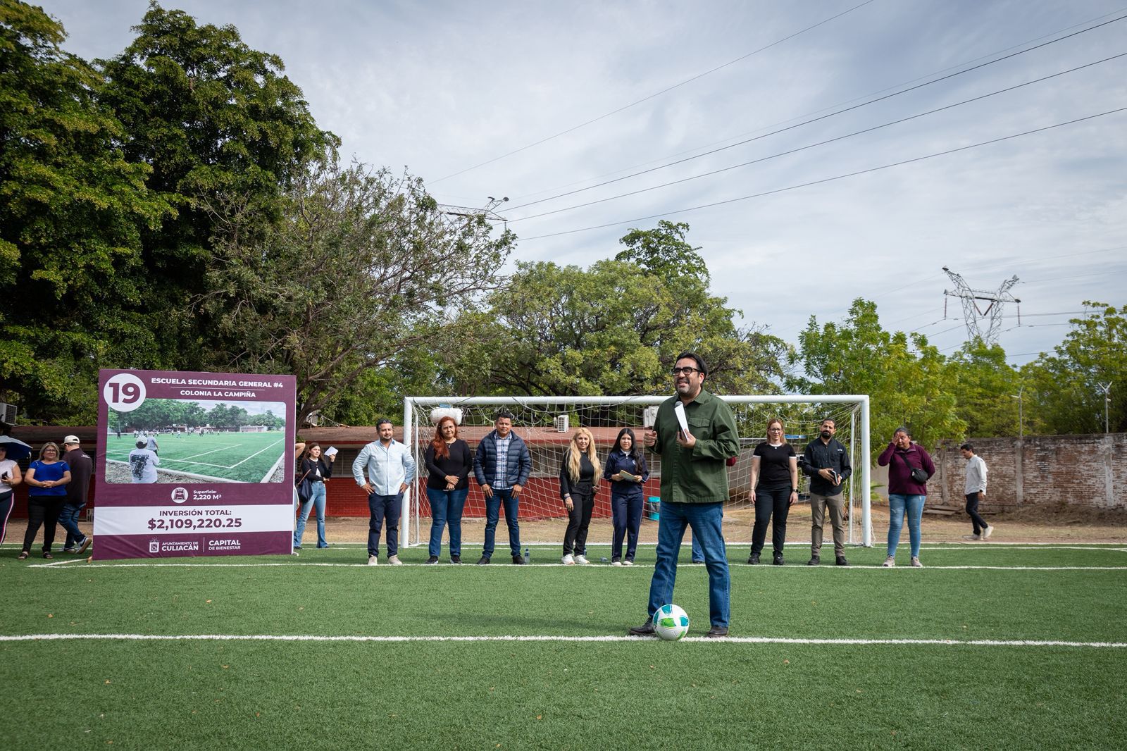 Culiacán, Sinaloa, a 20 de enero de 2026.– El alcalde Juan de Dios Gámez Mendívil entregó una cancha de fútbol con pasto sintético en la escuela secundaria General No. 4 “Pablo de Villavicencio”, ubicada en la colonia Campiña, en Culiacán.