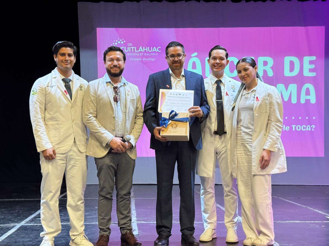 Antes de la entrega de la certificación, el Secretario de Salud, el doctor Cuitláhuac González Galindo, impartió una conferencia a los alumnos de la Facultad de Medicina, en el marco del Día Mundial de la Lucha contra el Cáncer de Mama.