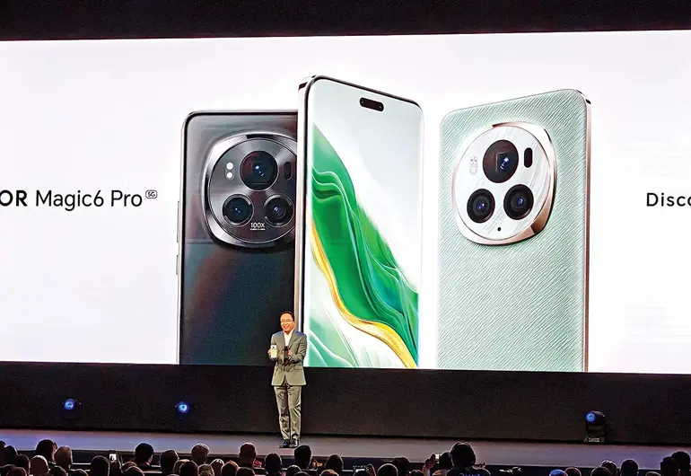 Colaborar entre sistemas operativos con la ayuda de la Inteligencia Artificial es parte de la evolución de la compañía Honor, quien ayer presentó en el inicio del MWC 2024 sus equipos Magic6 Series, con su versión Pro; su plegable Magic V2 Series; y la computadora MagicBook Pro 16, equipados con la IA a nivel de plataforma de la compañía.