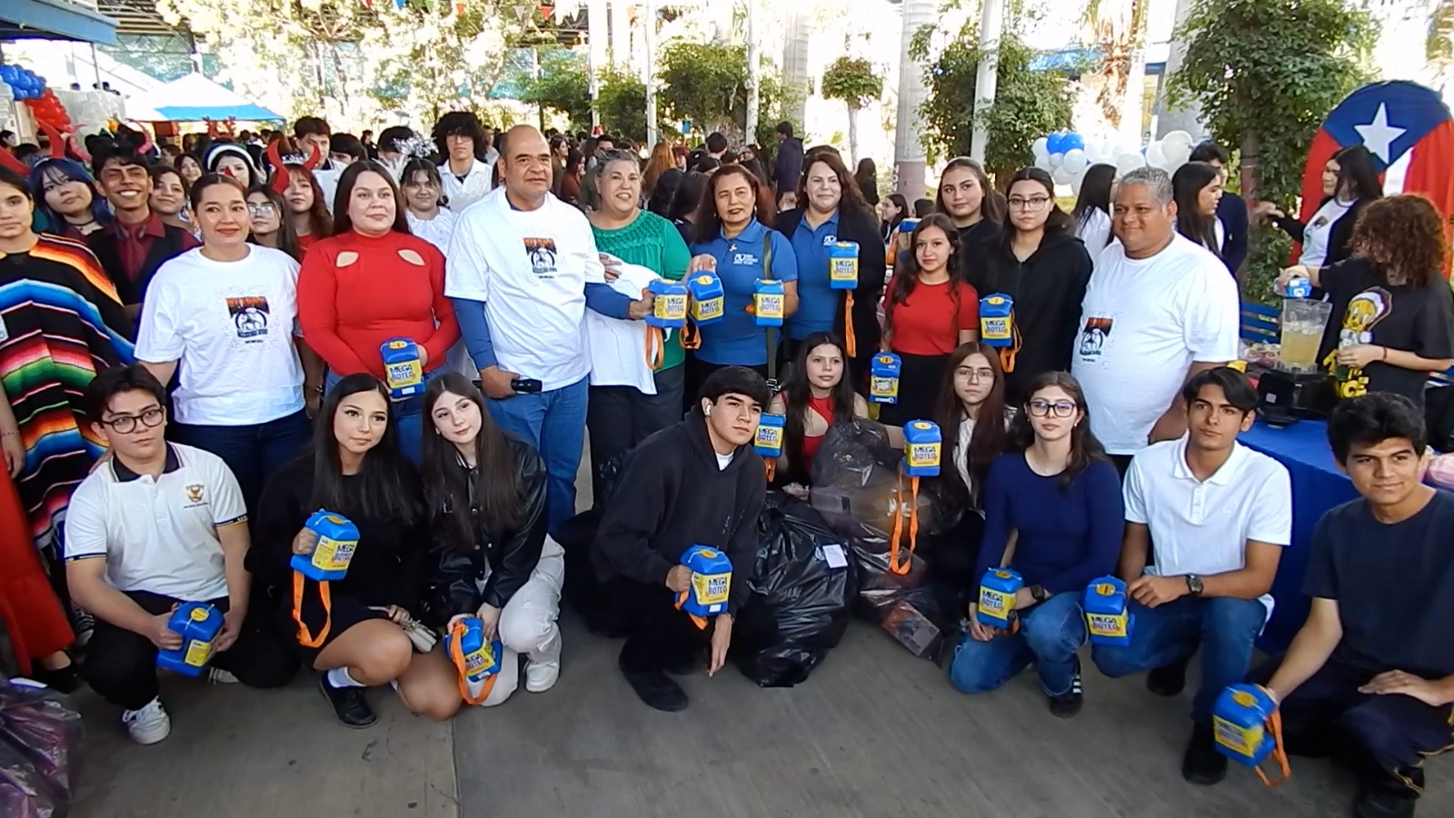 Además, las representantes de la asociación benéfica dedicada a apoyar a niños y jóvenes afectados por el cáncer, GANAC IAP, Jessica Peraza y Estéfana Ayala, recibieron de manos del director, 17 ánforas que los estudiantes llenaron con dinero en efectivo.