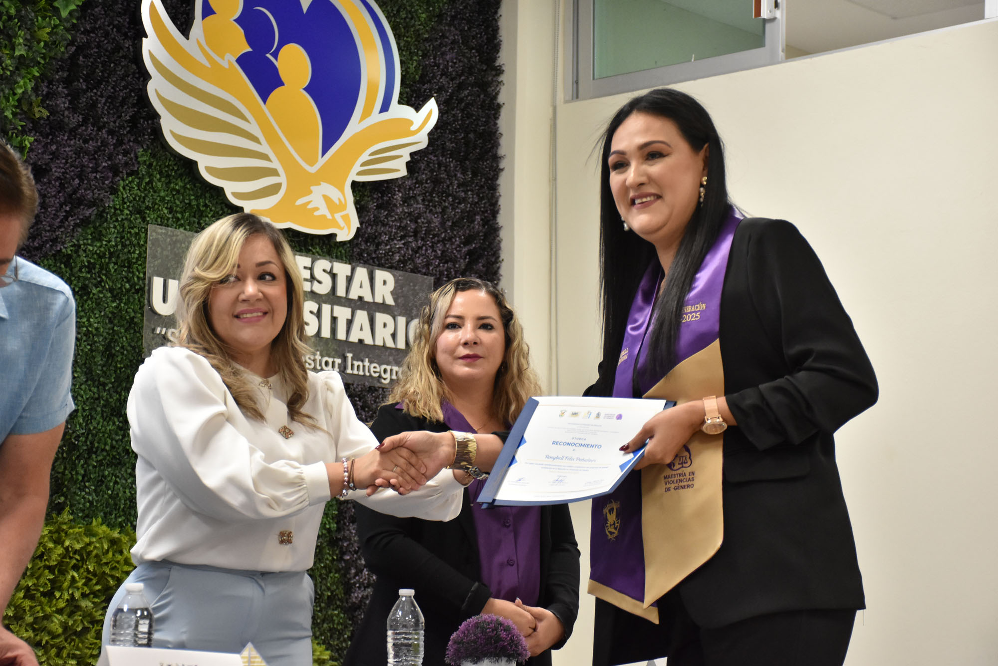 El Centro de Políticas de Género para la Igualdad entre Mujeres y Hombres y la Facultad de Derecho Culiacán de la Universidad Autónoma de Sinaloa (UAS), se vistieron de manteles largos al celebrar el acto académico de Graduación de la primera generación de la Maestría en Violencias de Género del ciclo 2023-2025, señaló Lizbeth García Montoya.