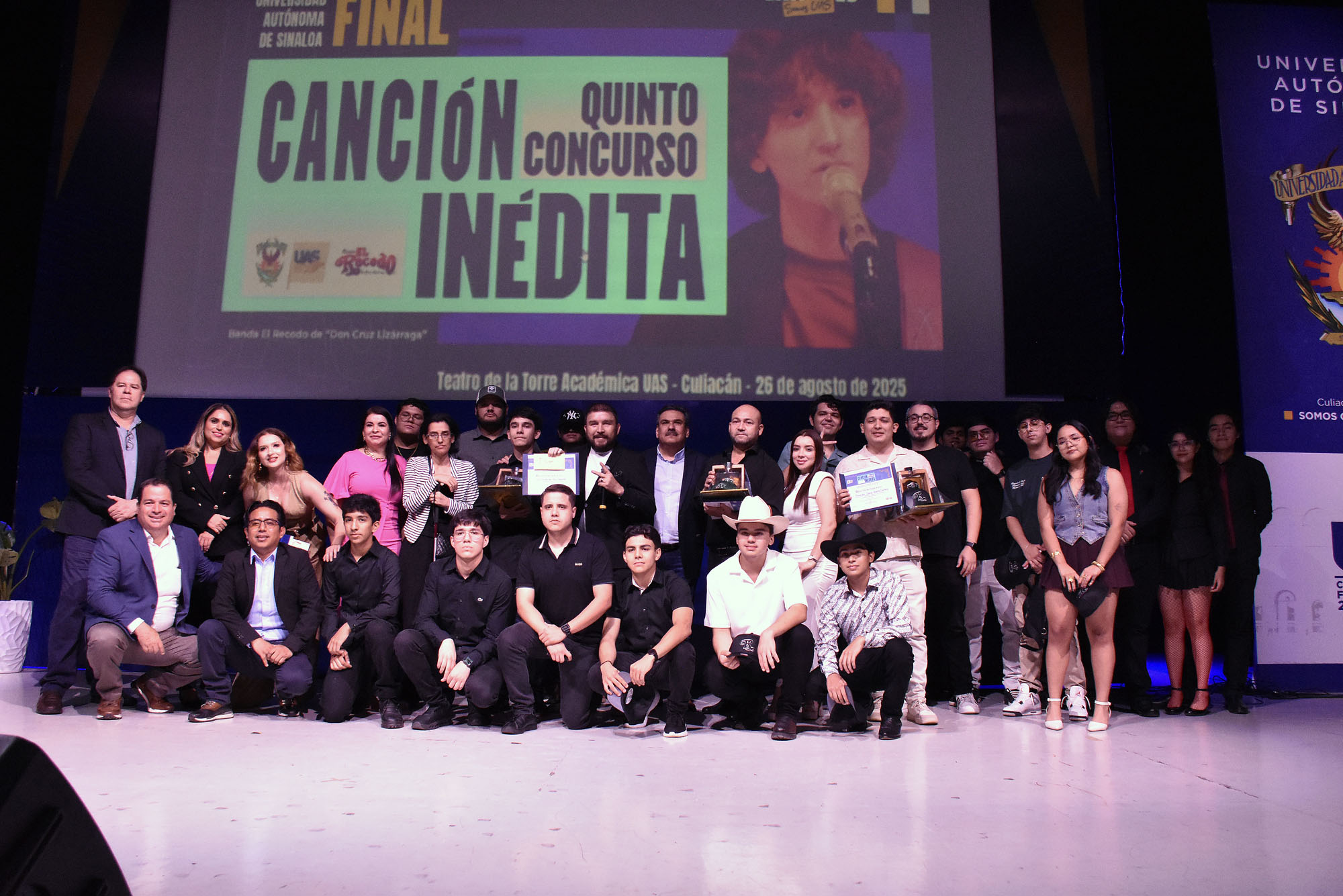 Con gran entusiasmo y derroche de talento sobre el escenario, se celebró la gran final del 5° Concurso de la Canción Inédita género libre, certamen convocado por la Universidad Autónoma de Sinaloa (UAS) a través de la Coordinación general de Extensión de la Cultura y la Banda El Recodo de Don Cruz Lizárraga, siendo los ganadores de esta edición los compositores Luis Guillermo Rico Velarde, Daniel Huerta Cabrera y Roberto Vega Murillo.
