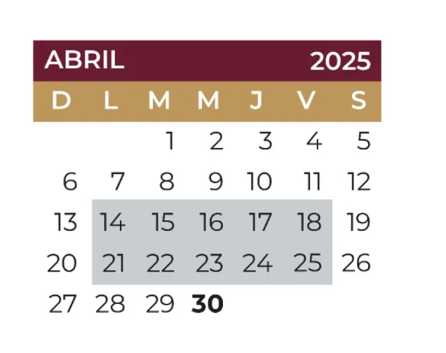 Estas semanas se aplicarán de manera equitativa para el personal docente y alumnos, comenzando el día lunes 14 de abril y culminando el viernes 25 del mismo mes, así se encuentra establecido en el Diario Oficial de la Federación.