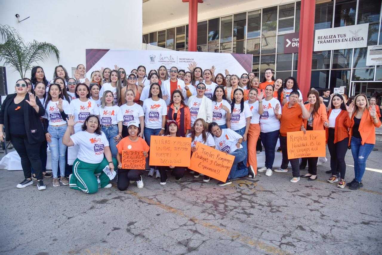 “Por eso estamos aquí, para sumar esfuerzos, para alzar la voz, caminando juntos, mujeres, hombres, sociedad y Gobierno, estamos aquí para recordarles a nuestras mujeres que no están solas, que en Ahome se trabaja 24/7 para brindarles apoyo y seguridad”.