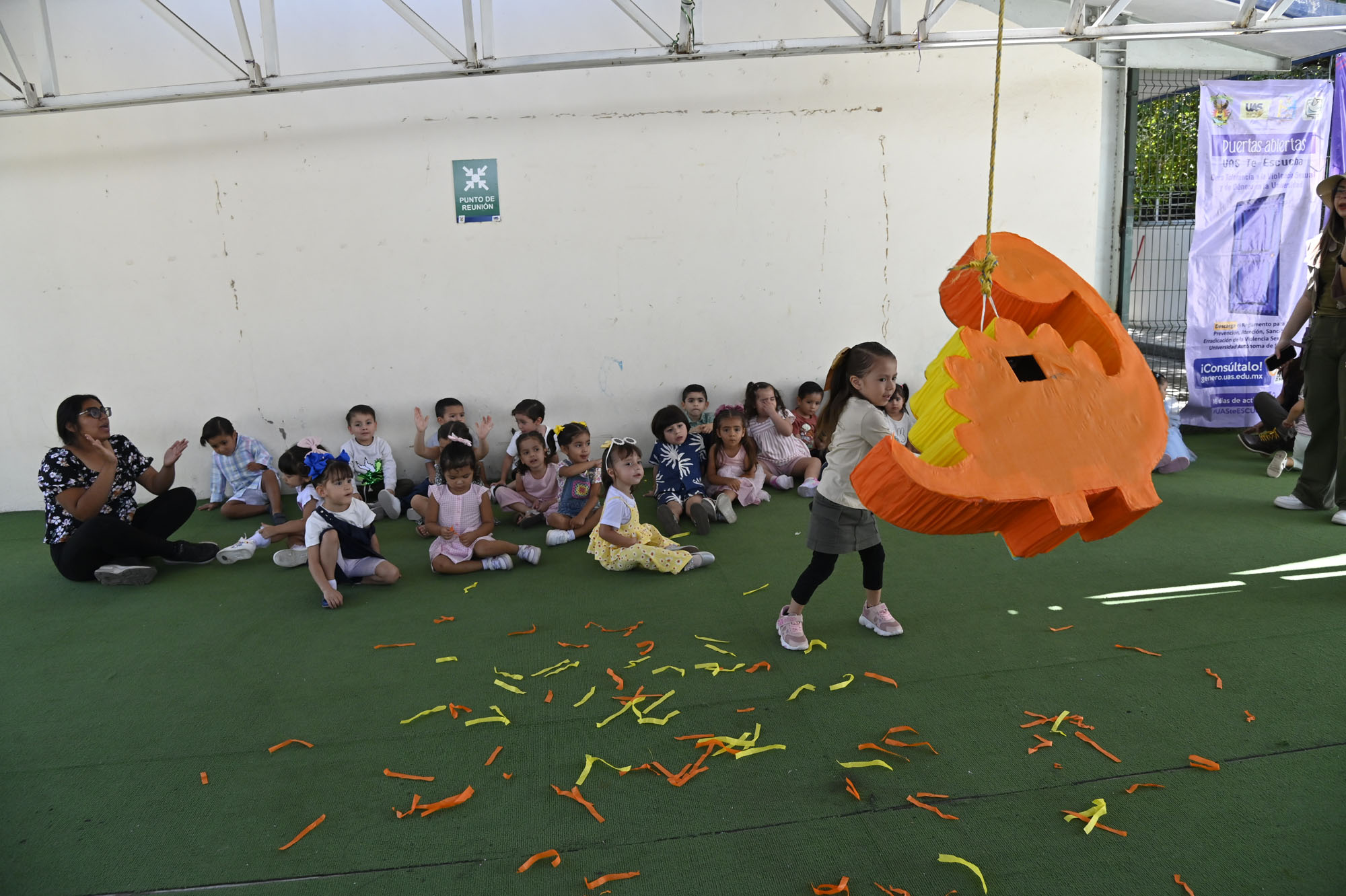 En un ambiente de safari, piñata, globos de colores, música y juegos lúdicos festejaron el Día de la Niñez alrededor de 60 niñas y niños, hijos de estudiantes de la Universidad Autónoma de Sinaloa (UAS), que son atendidos de manera integral en la Estancia Infantil UAS, quienes pasaron una divertida mañana en tan esperada fecha.