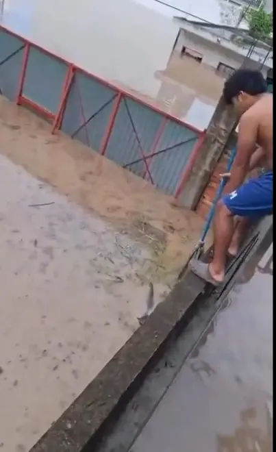 El michi maullaba con desesperación, y el niño, sin importar que su casa también estaba afectada por las aguas, decidió actuar.