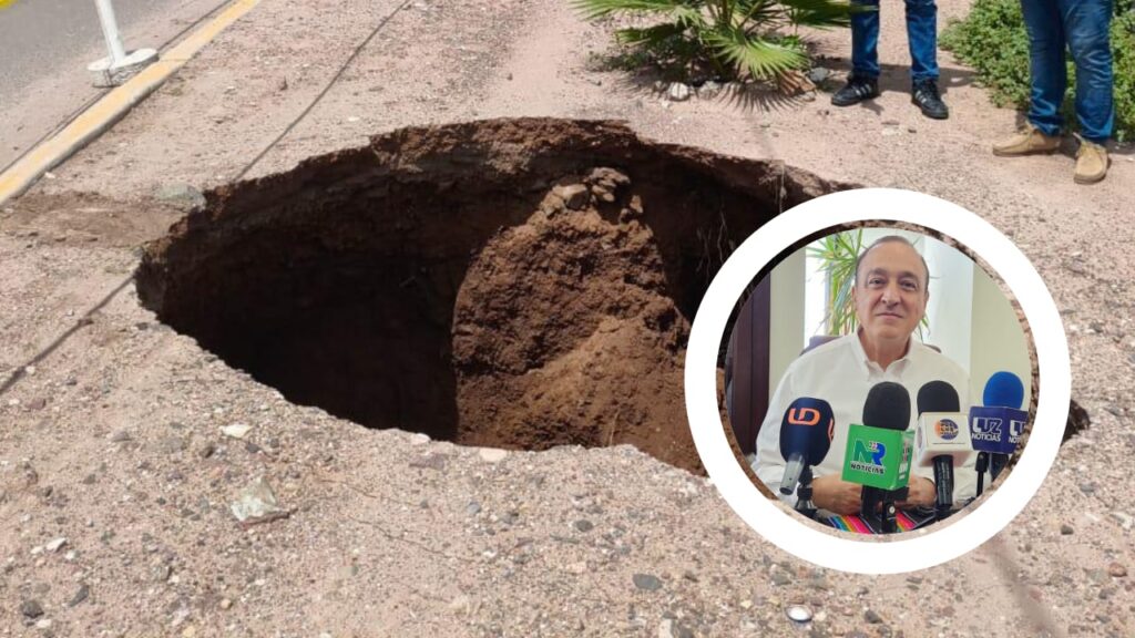 Los Mochis, Sin.– Autoridades municipales atendieron de inmediato un socavón en el Boulevard Centenario, provocado por la fractura de una tubería de drenaje de 42 pulgadas, informó el alcalde Antonio Menéndez de Llano Bermúdez.