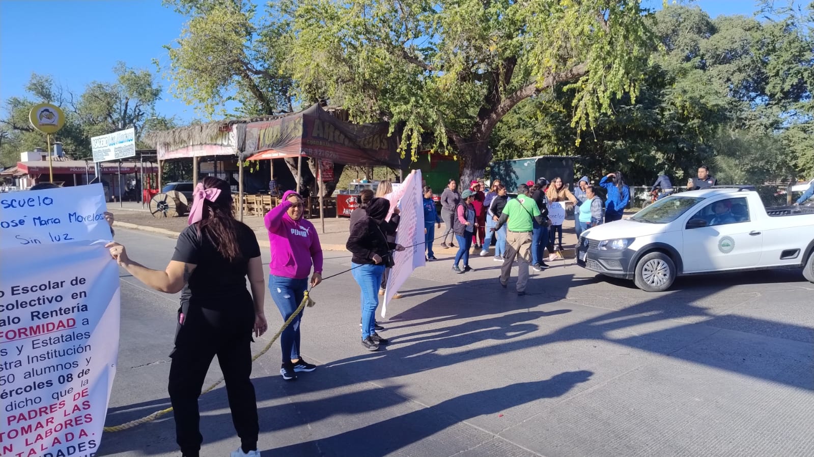 Los Mochis.-  Padres de familia de la escuela Gonzalo Renteria y Mario Lopez Valdes bloquearon boulevard Pedro Anaya para exigir solución a la falta de energía eléctrica en los planteles.