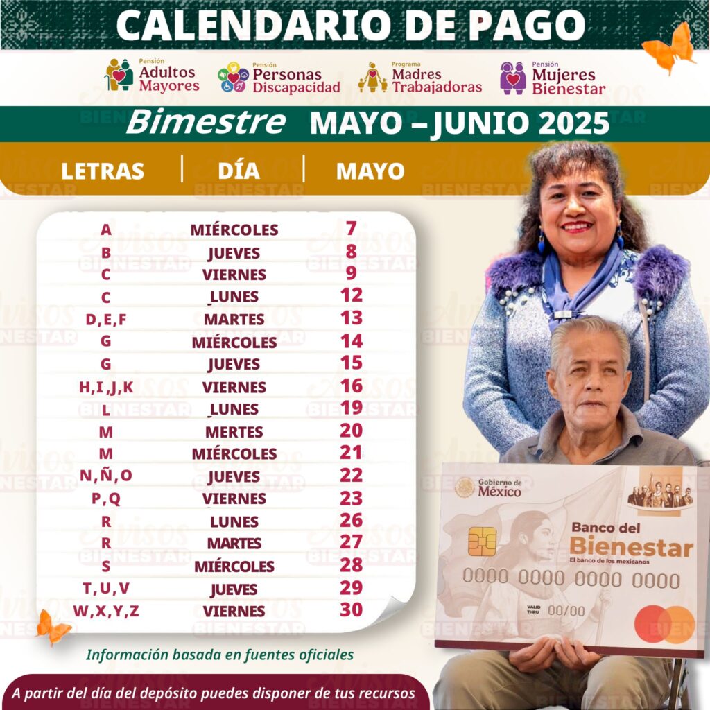 De acuerdo con el calendario oficial, hoy es el turno de las y los beneficiarios cuyo primer apellido comienza con la letra C, quienes podrán acudir al Banco del Bienestar a retirar sus recursos a partir de este mismo día.