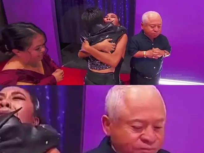 En contraste, la figura de su padre generó conversación. De pie, con las manos entrelazadas y un gesto serio, el “viejón” negó levemente con la cabeza, lo que muchos interpretaron como decepción. Su expresión fue leída por el público como una muestra de inconformidad por no haber alcanzado el primer lugar.