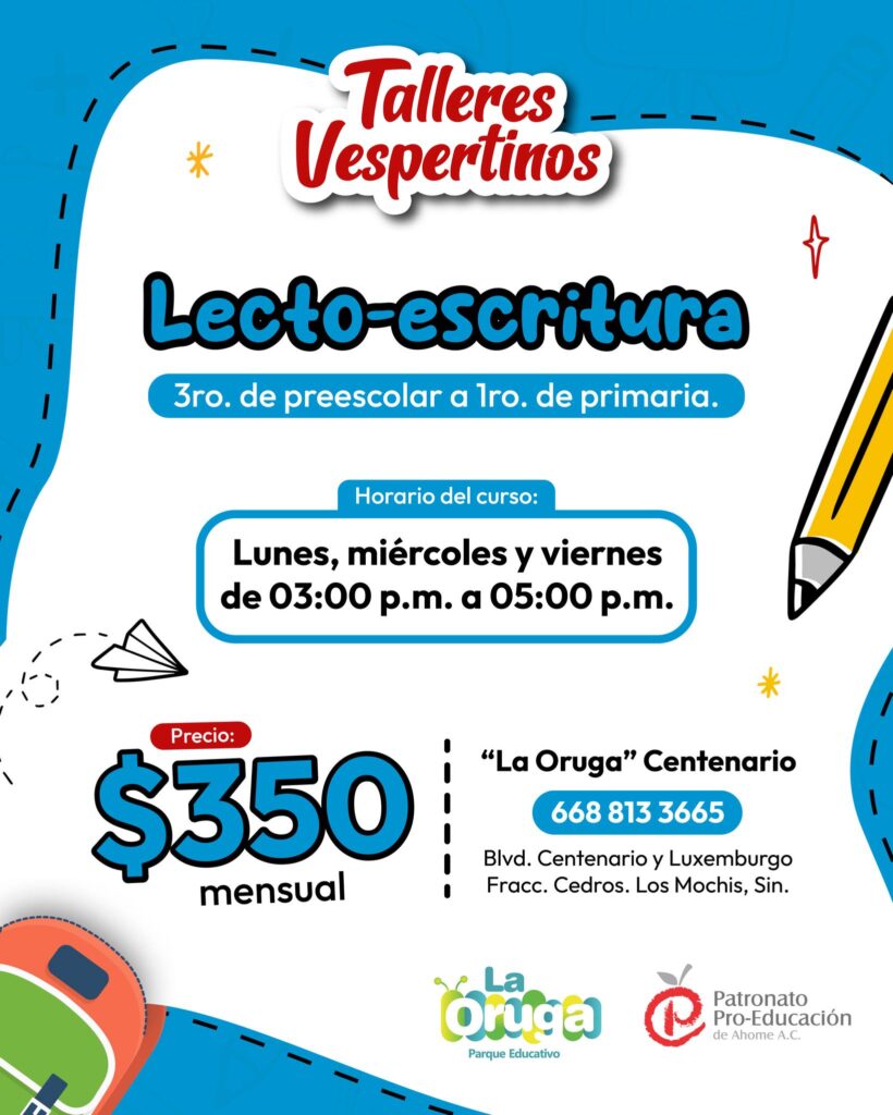 Los Mochis, Sin.- El curso vespertino de Lecto-Escritura del Patronato ProEducación de Ahome ya está disponible para todos los niños y niñas de tercero de preescolar y primero de primaria, ¡date prisa, porque arranca este lunes! Así lo dio a conocer la Licenciada Verónica Estrada Ayala.