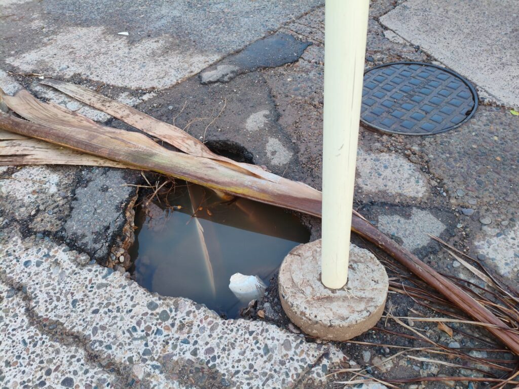Cabe destacar que el socavón ya fue delimitado, señalizado y se colocarán mechones para evitar que algún vehículo caiga.