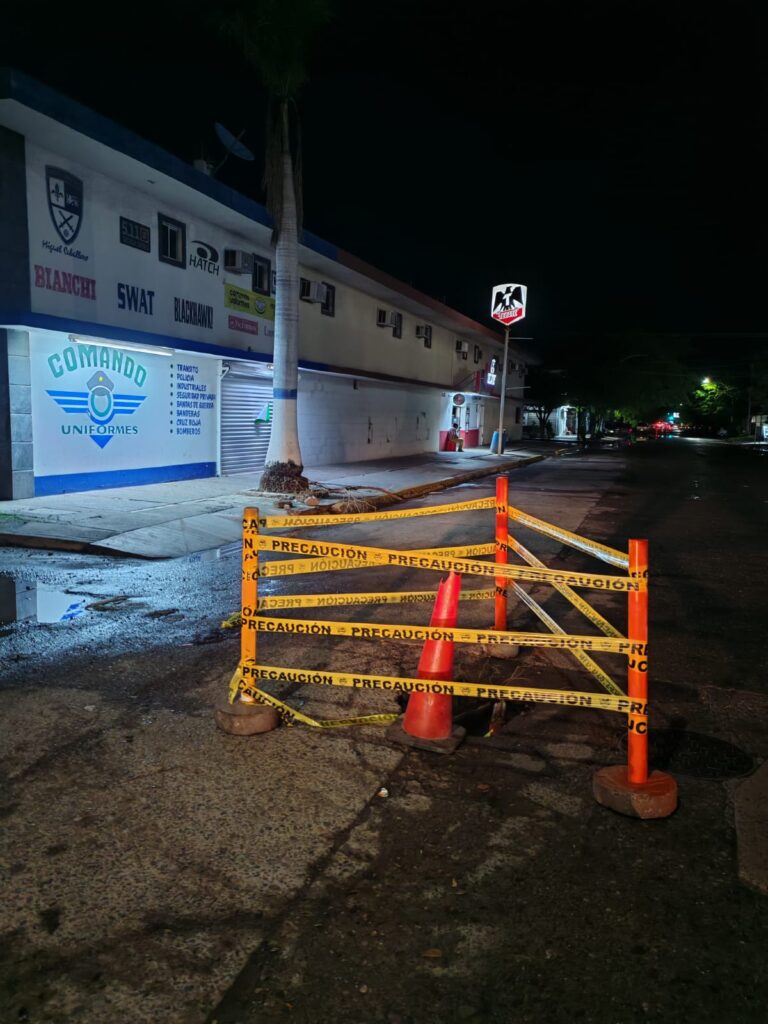El presidente municipal de Ahome, Antonio Menéndez de Llano Bermúdez, acudió personalmente al lugar y explicó que se trata de un pequeño hundimiento causado por un caído de tubería de drenaje.