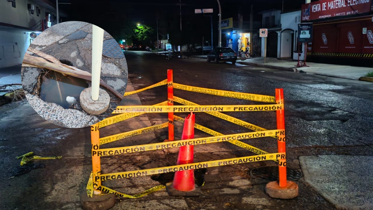 Cabe destacar que el socavón ya fue delimitado, señalizado y se colocarán mechones para evitar que algún vehículo caiga.