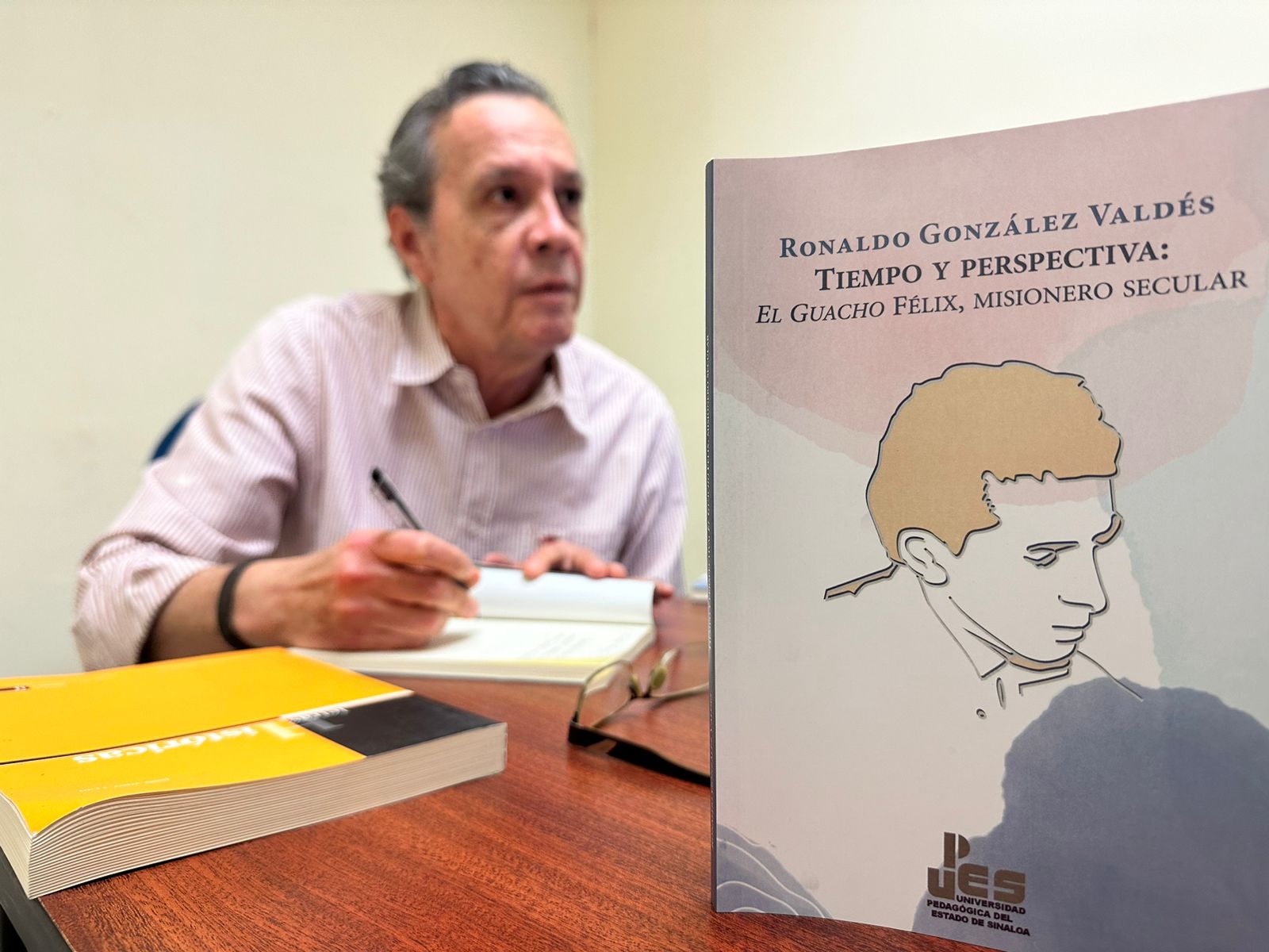 González Valdés explicó que, como parte de una deuda con la historia contemporánea, se le rinde un homenaje a “El Guacho Félix, con el libro “Tiempo y perspectiva: El Guacho Félix, misionero secular”, destacado personaje culichi que realizó un enorme trabajo en pro del desarrollo cultural en Sinaloa, ya que existen muy pocos trabajos de investigación que narren su vida y obra.