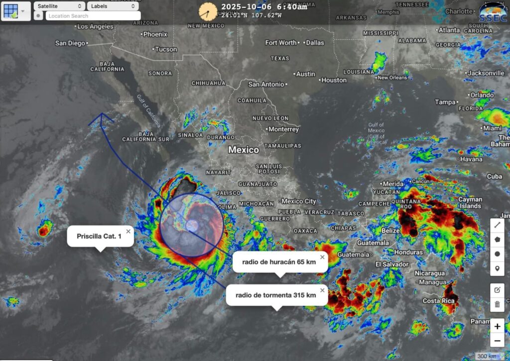 Por su parte, el titular de Protección Civil de Ahome, teniente Mario Cosme Gallardo, explicó que las bandas nubosas de Priscila ya afectan regiones de Colima, Jalisco y Michoacán, y se desplazan paralelas a la costa del Pacífico, con una trayectoria que podría dirigirse al noreste del país.