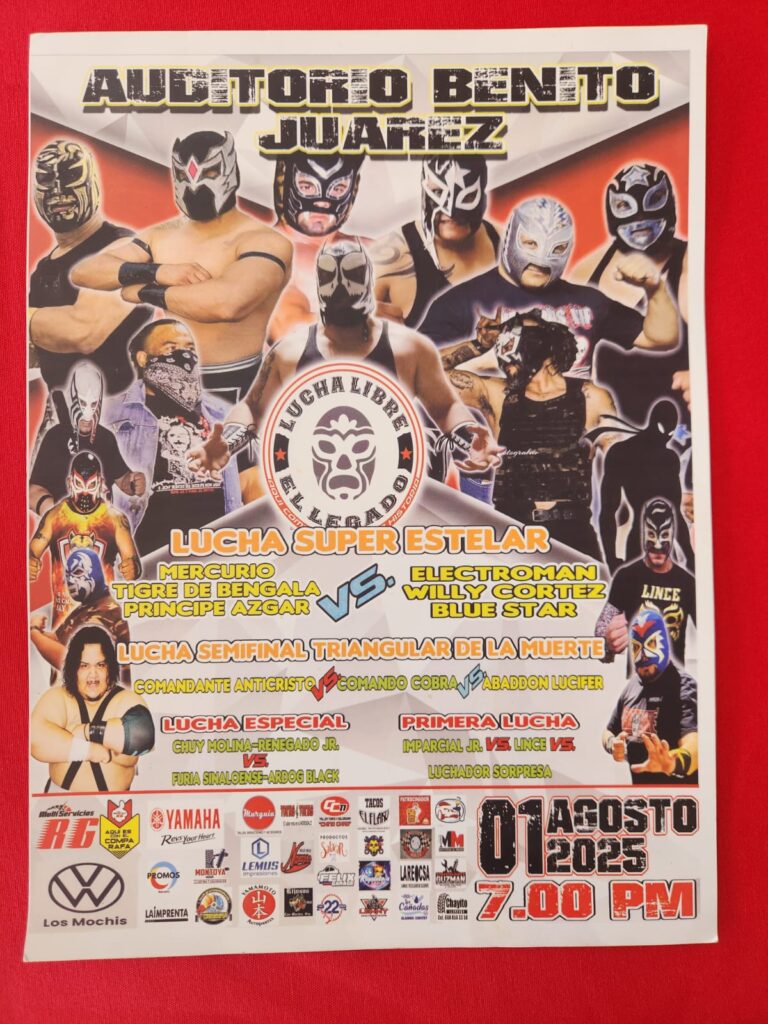 Los Mochis, Sin.– Este viernes 1 de agosto, el Auditorio Benito Juárez se convertirá en el epicentro de la emoción y los vuelos espectaculares con el evento de lucha libre organizado por el equipo de “El Legado”.