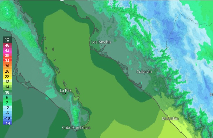 Temperaturas mínimas esperadas para Sinaloa:
