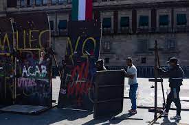 Palacio Nacional y la Catedral Metropolitana de la Ciudad de México fueron rodeadas con vallas ante la marcha con motivo del onceavo aniversario de la desaparición de los 43 estudiantes normalistas de Ayotzinapa.