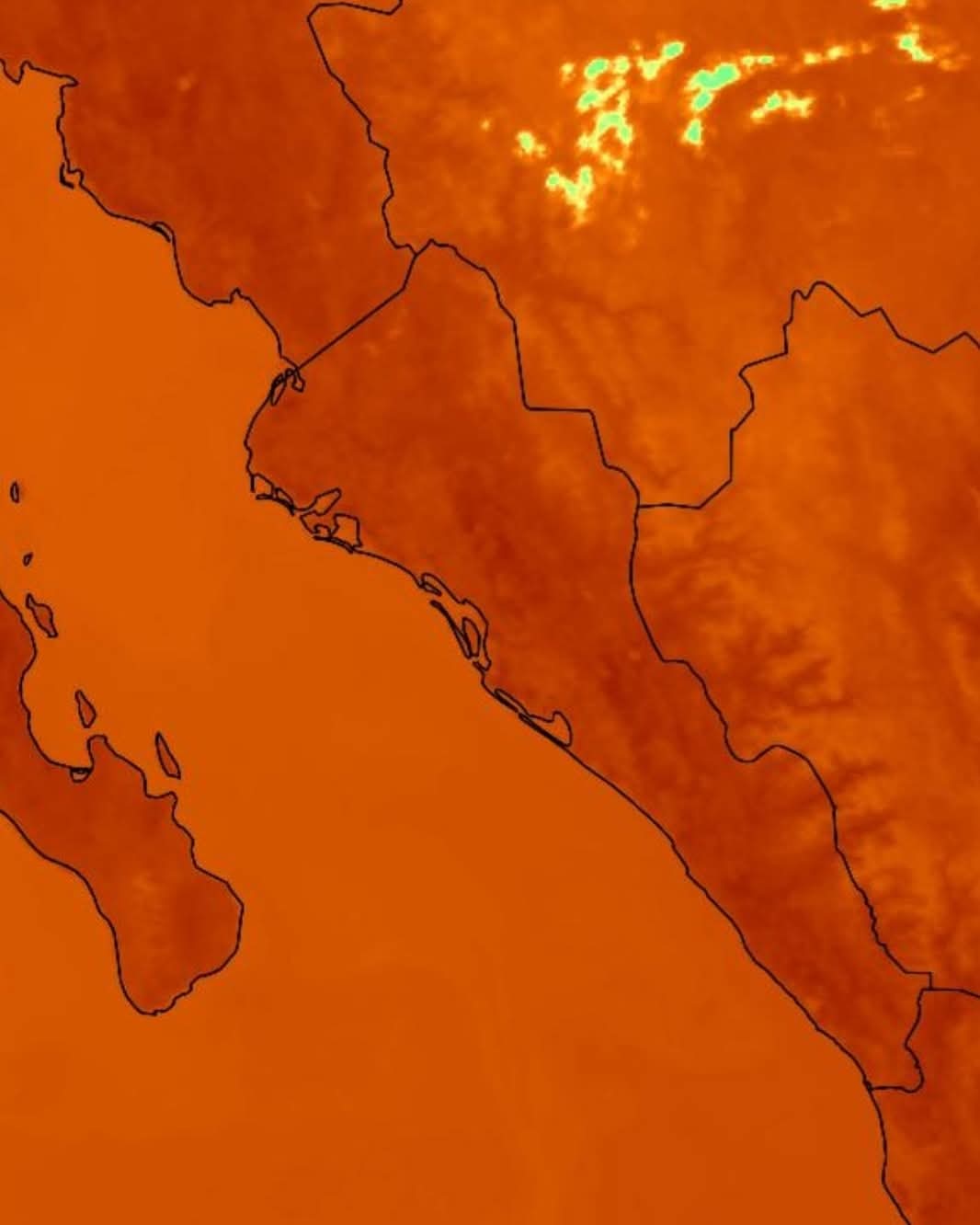 Aunque las temperaturas ambientales no alcanzan niveles extremos, la radiación solar e infrarroja registrada este martes presenta valores inusualmente altos para la temporada invernal, de acuerdo con imágenes satelitales de infrarrojo, similares a las que comúnmente se observan en los meses de junio.