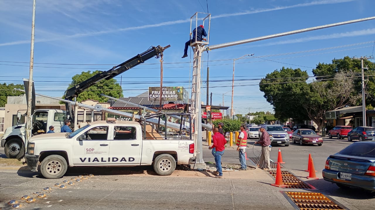 Tapia Castro agregó que este mismo proceso se lleva a cabo en el cruce de Pedro Anaya y Río Fuerte, donde ya se realizan trabajos de instalación de las bases.
