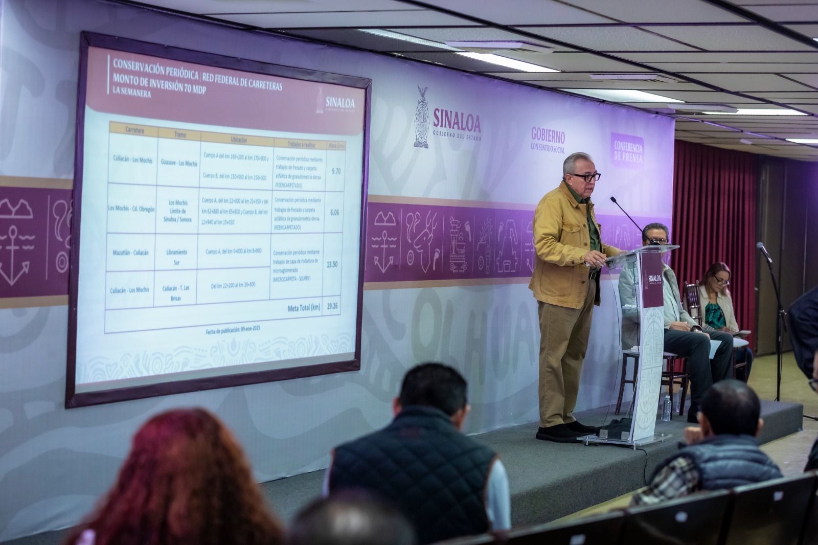 En la conferencia Semanera, destacó que está por licitarse el puente Óscar Pérez Escobosa, en la calle del mismo nombre en Mazatlán, que tiene un costo de 420 millones de pesos, además que quedaron de proporcionar asfalto para algunas carreteras que se tienen ya aplanadas como la de Huixiopa.