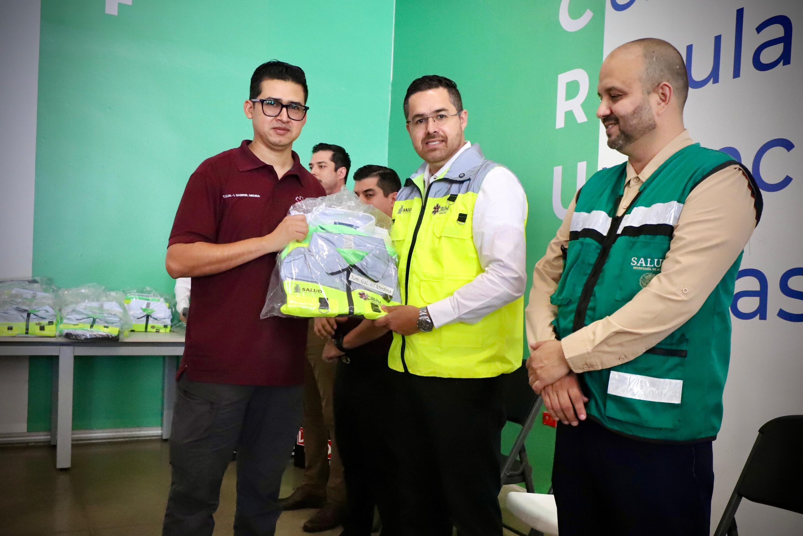 Culiacán, Sinaloa, 25 de junio del 2025.- En el marco del Día del Socorrista y con el fin de fortalecer el Centro Regulador de Urgencias Médicas (CRUM), la Secretaría de Salud de Sinaloa hizo entrega de uniformes y equipamiento a los trabajadores de esta área quienes brindan atención prehospitalaria y de urgencias médicas en el estado.