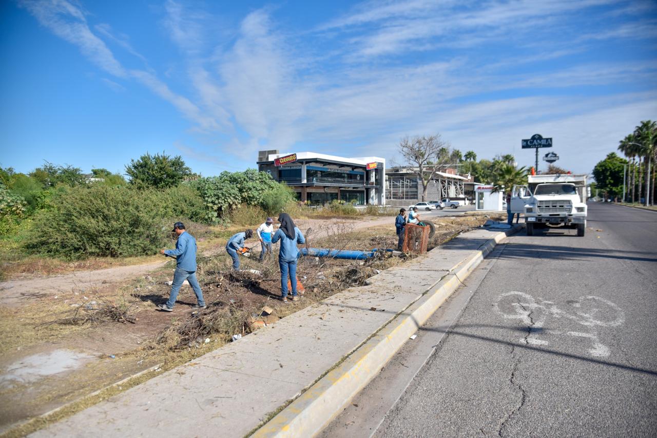 En este sentido, personal de Servicios Públicos realiza trabajos de limpieza por el boulevard Antonio Rosales, boulevard Francisco Labastida y carretera Los Mochis – Topolobampo.