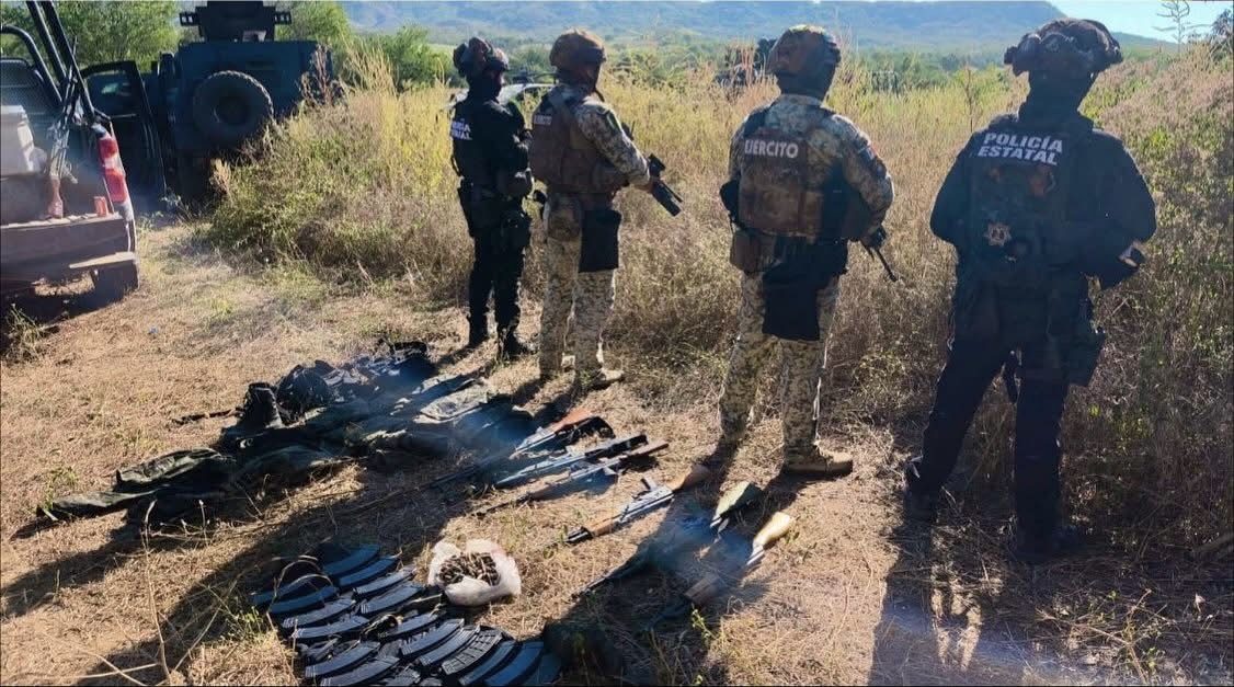 Los hechos ocurrieron cuando policías estatales realizaban recorridos de vigilancia en las inmediaciones de Tepuche y Agua Blanca, donde detectaron un asentamiento clandestino con personas armadas. Al solicitar apoyo terrestre y aéreo, los presuntos delincuentes abrieron fuego contra las autoridades, lo que desató un enfrentamiento que fue repelido por los cuerpos de seguridad.