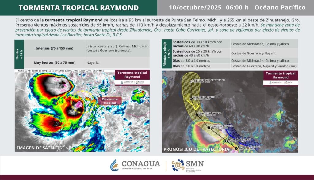 Los Mochis, Sin. — La tormenta tropical Raymond, formada el pasado jueves 9 de octubre en el Pacífico, mantiene vigilancia en las costas del occidente del país, aunque por el momento no representa un impacto directo en Sinaloa.