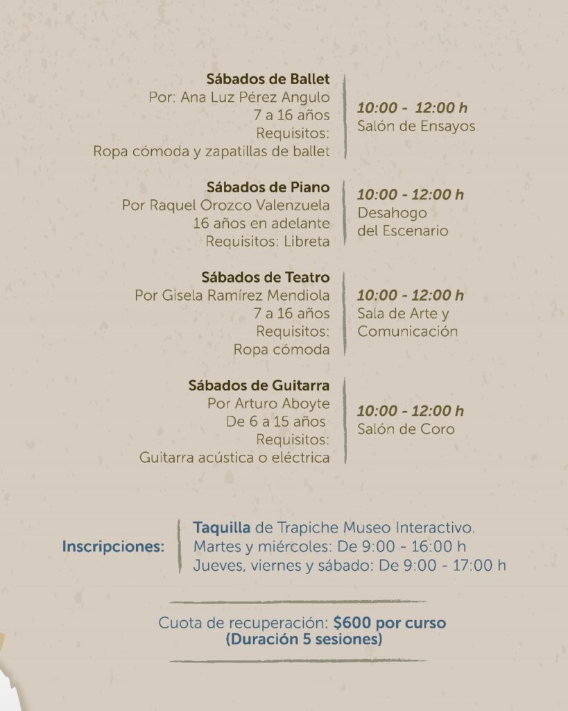Los Mochis, Sinaloa.- El Teatro Ingenio dio a conocer sus próximos talleres los cuales se estarán impartiendo todos los sábados de noviembre y 7 de diciembre en sus instalaciones.