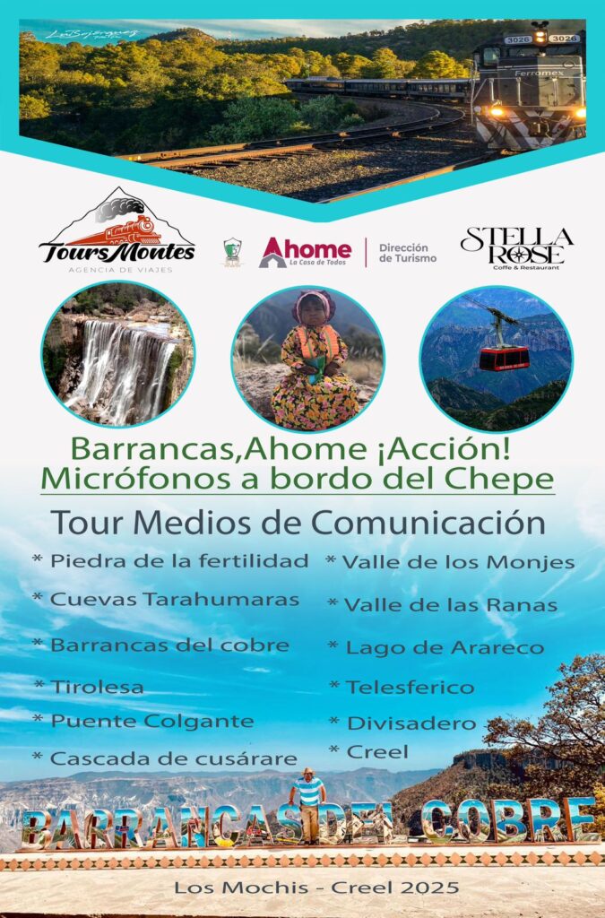 En esta ocasión, Tour Montes, en coordinación con la Dirección de Turismo Ahome, anunciaron oficialmente el viaje “Amigos de los Medios de Comunicación a Creel, Chihuahua”, programado para el 16 de noviembre, una actividad que forma parte de los esfuerzos por impulsar el turismo y fortalecer la conexión entre regiones.