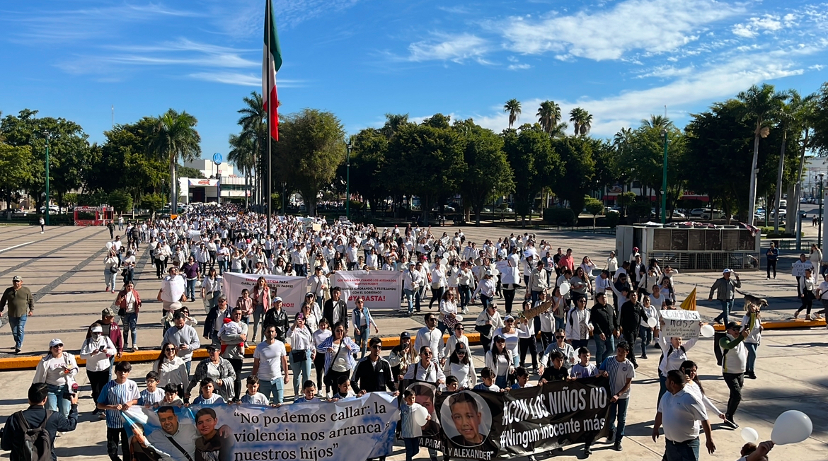 Cientos de familias vestidas de blanco marcharon para exigir justicia porque mataron a los niños Gael y Alexander, de 12 y 9 años de edad, respectivamente, así como a su papá Antonio de Jesús.