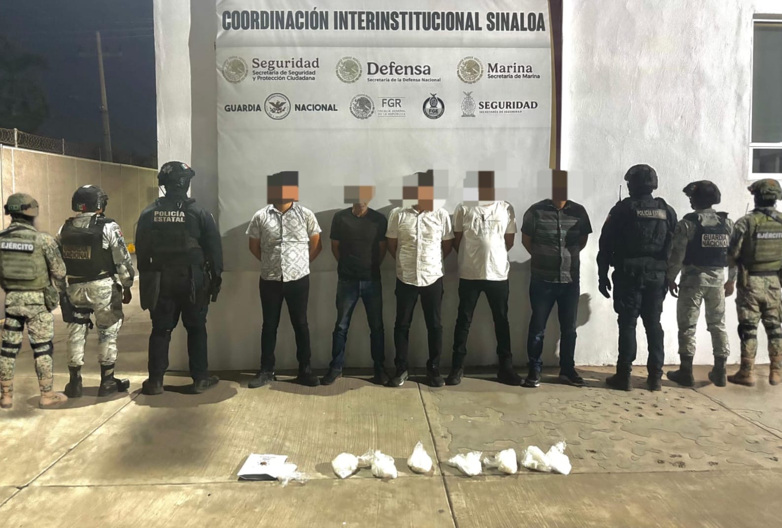 Tras denuncia anónima, aseguran a 5 civiles, un vehículo y presunta droga en Culiacán