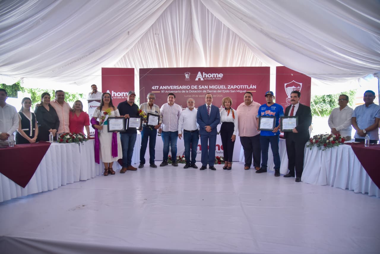 San Miguel Zapotitlán, Ahome, Sinaloa, a 29 de septiembre del 2025.- Para conmemorar los 417 años de fundación de San Miguel Zapotitlán y el 94 aniversario de la dotación de tierras del Ejido San Miguel, autoridades municipales celebraron Sesión Solemne de Cabildo en la Plazuela de dicha comunidad, donde se reconoció la labor de 5 distinguidos ciudadanos que trascienden por su trabajo en favor de sus vecinos, en diferentes ámbitos de la vida social.