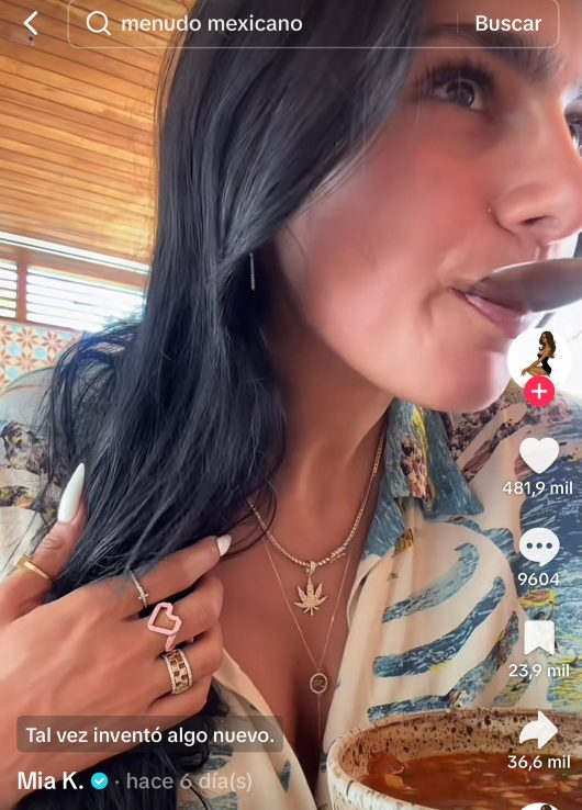 Mía Khalifa, exactriz de cine para adultos, compartió en TikTok un video que grabó mientras comía menudo en México y su reacción se ha hecho viral en redes sociales.