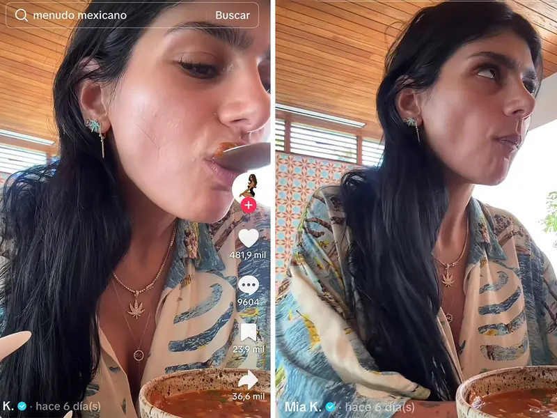 Mía Khalifa, exactriz de cine para adultos, compartió en TikTok un video que grabó mientras comía menudo en México y su reacción se ha hecho viral en redes sociales.