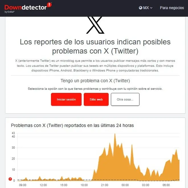 La caída de X inició desde el lunes por la noche